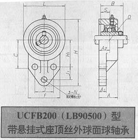 LB90500(UCFB200)型 带悬挂式座顶丝外球面球轴承参数表