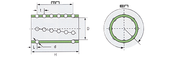 该产品利用钢球滚动原理,配上铜基、铝基或树脂为保护架,按一定的角度和密度有序地排列。采用最新满槽圆周锁珠工艺,防止钢珠脱落。 该产品具有磨擦系数低,轴向、径向都能运动的特点,依靠滚动磨擦,实现无间隙装配,保证了导向精度。 该产品是传统导柱套的更新换代产品,能高速运动,主要用于冷冲模滚动模架及高精度机床、机床附件等领域。 | |